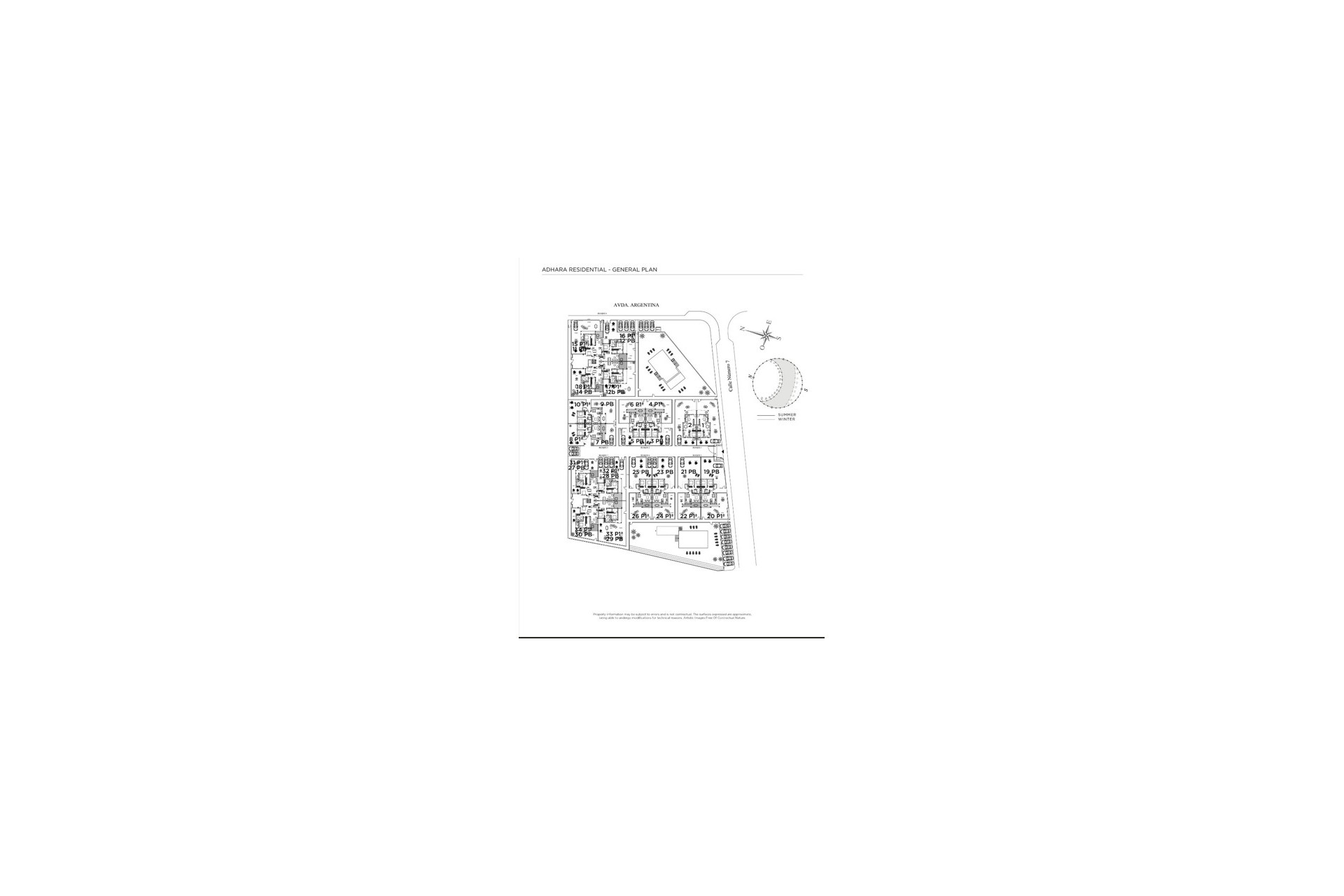 El apartamento es parte del exclusivo residencial Adhara, ubicado a tan sólo 10 minutos de la playa que está compuesto por diferentes tipologías de vivienda: apartamentos planta baja con jardín y planta alta con solárium y villas semi adosadas. Las áreas comunes ajardinadas con gran piscina comunitaria y parking.