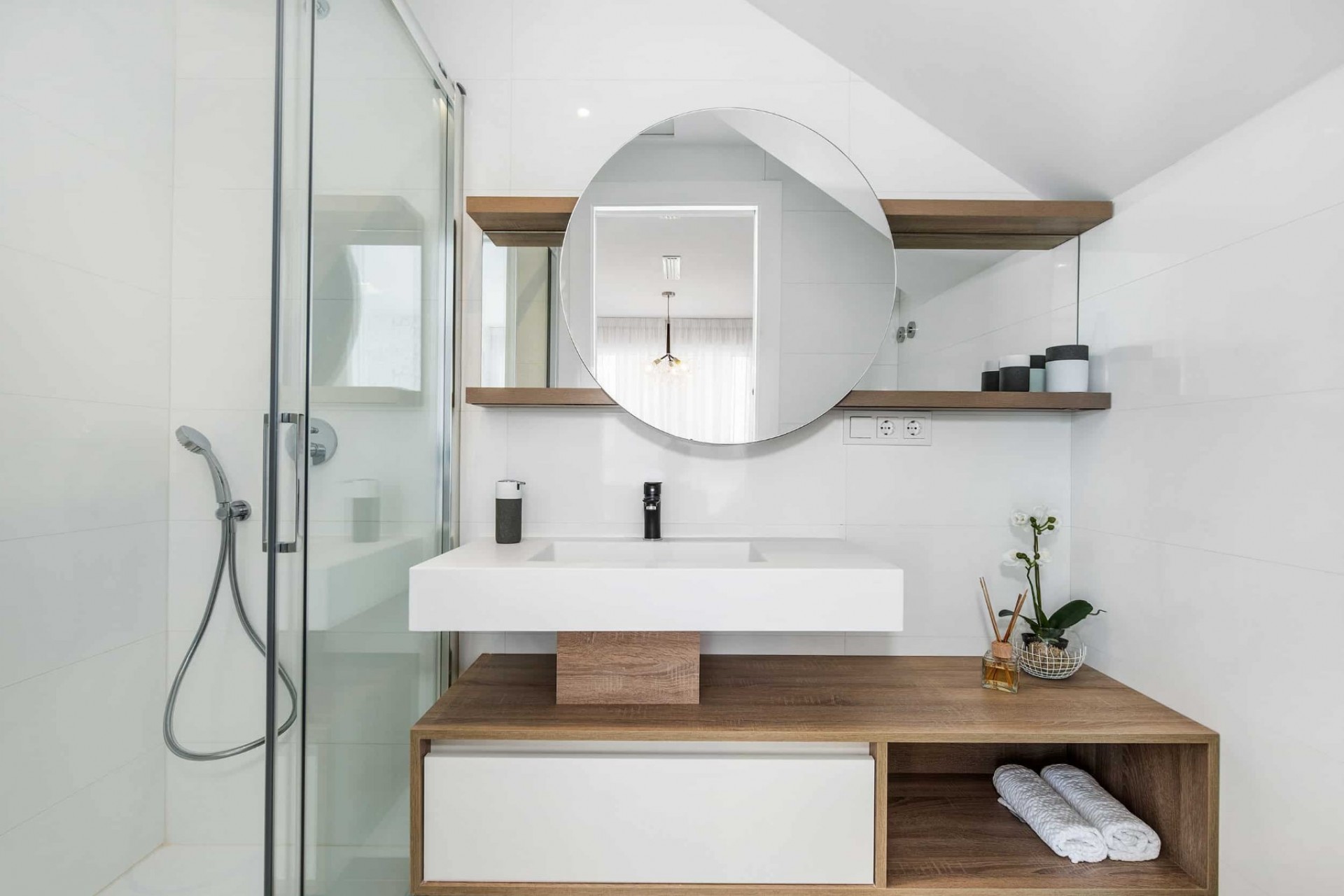 La villa se distribuye en planta baja con 1 habitación y 1 baño, amplio salón comedor con cocina abierta totalmente amueblada que proporciona un ambiente acogedor y contemporáneo, el amplio ventanal abre a terraza y jardín. En la planta primera 2 habitaciones con terraza privada y 1 baño. En la parte superior solárium con pérgola. Aparcamiento privado y trastero.