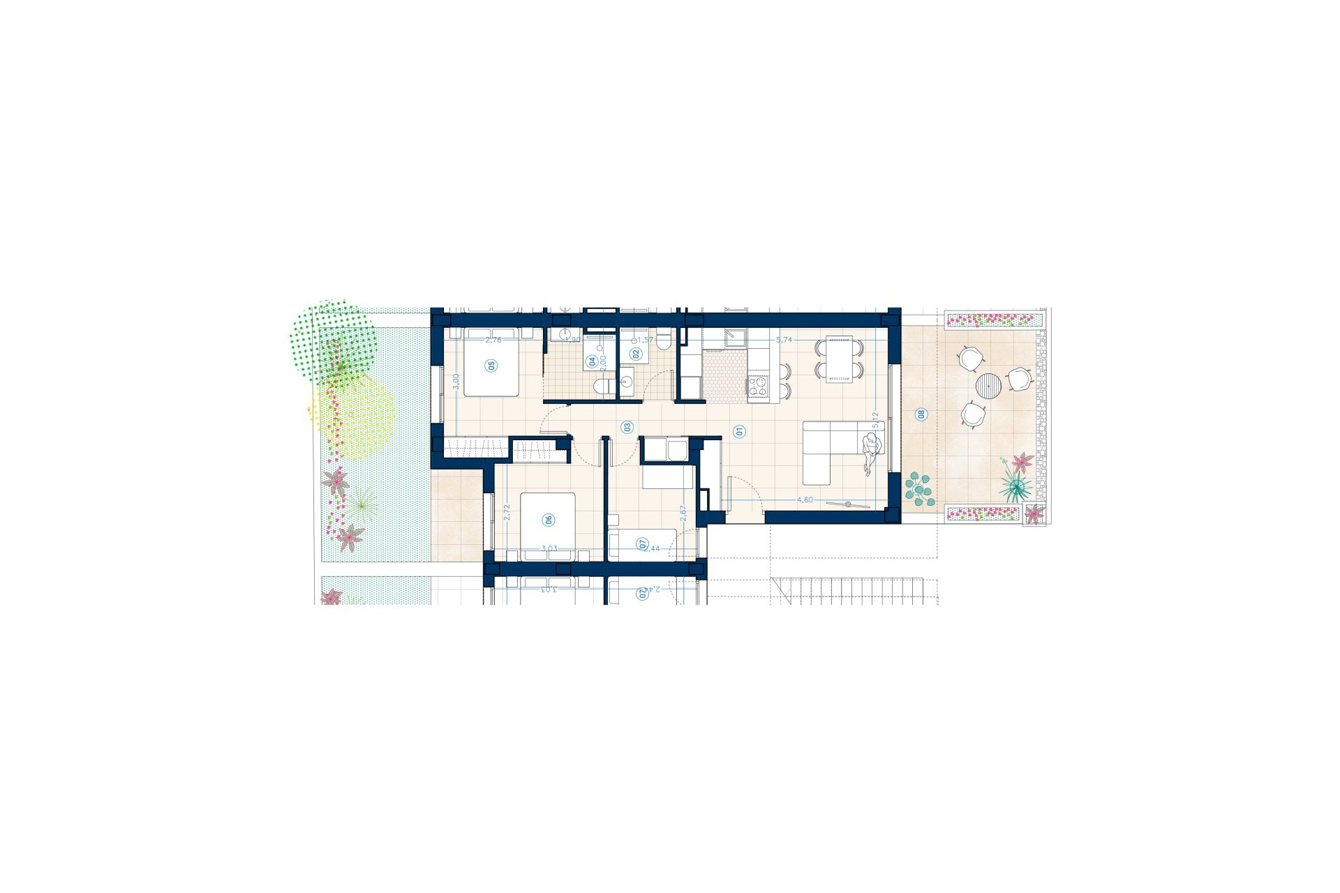Este exclusivo residencial, situado en una de las mejores zonas de interés turístico de la Costa Blanca, está compuesto por 88 apartamentos con viviendas de diseño moderno y excelentes acabados. Las viviendas pueden ser en planta baja con jardín y planta alta con solárium, de 2 y 3 dormitorios.
