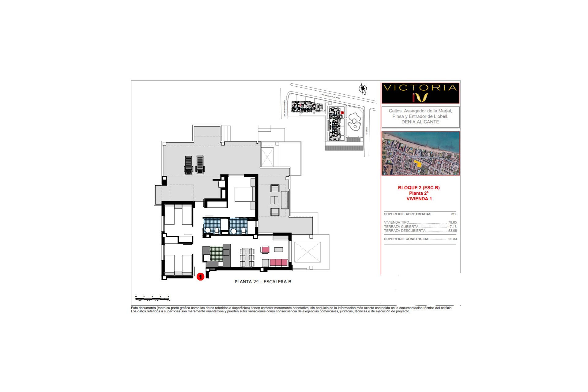 Mieszkanie jest częścią nowoczesnego kompleksu mieszkalnego położonego 100 metrów od plaży i 2 km od centrum Denia. Składa się z 29 apartamentów z 2 i 3 sypialniami. Wszystkie apartamenty posiadają duże tarasy.