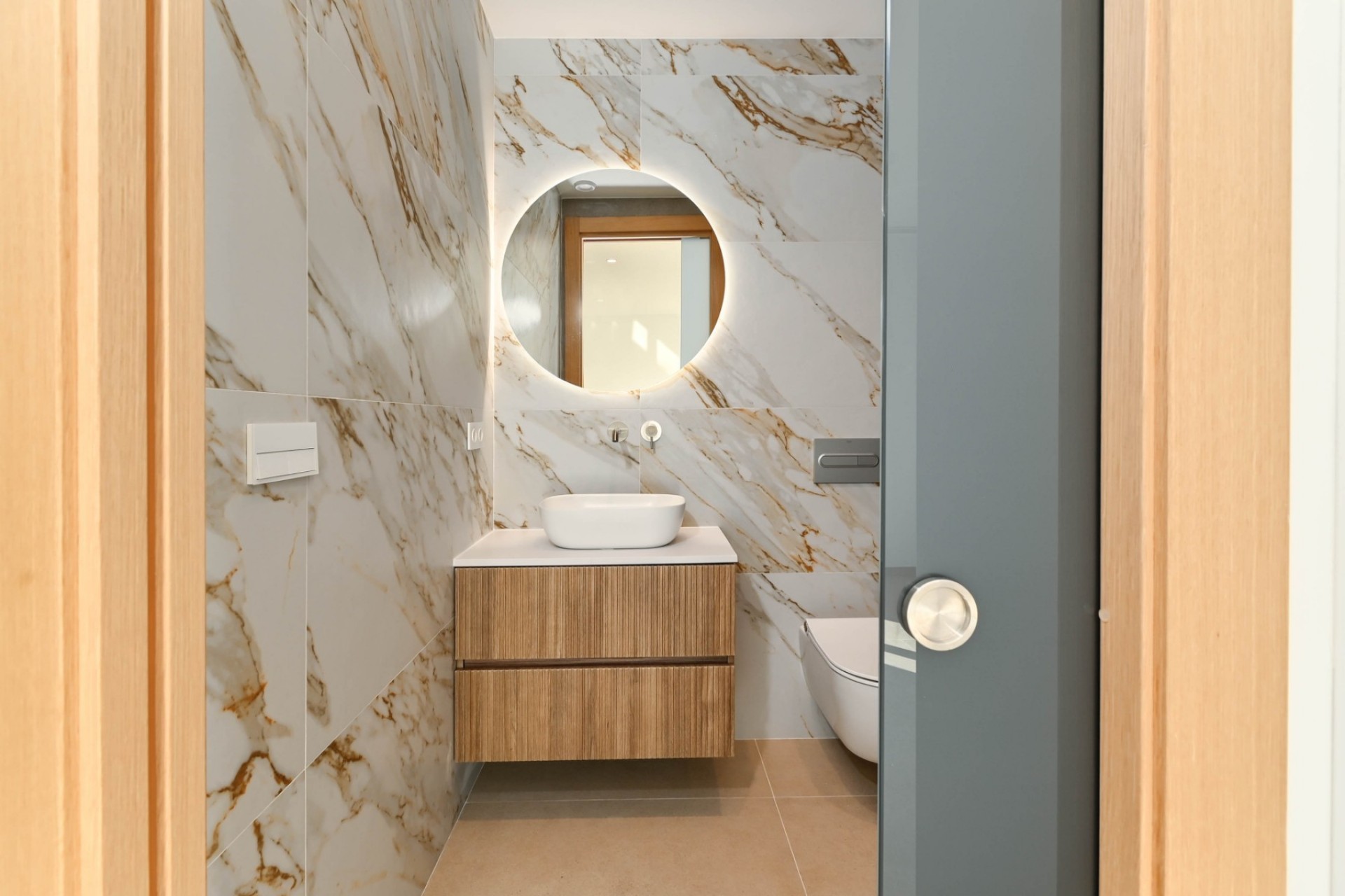 WYPOSAŻENIE: Panel słoneczny z akumulatorem 200 litrów, ogrzewanie podłogowe z pompą ciepła, energia aerotermalna, LED na płytach frontowych na zewnątrz, toalety podwieszane, wykończony ogród, automatyczne nawadnianie, winda, okna Technal, preinstalacja kamer zewnętrznych, instalacja alarmowa wewnętrzna, rolety z systemem automatyki domowej, drzwi automatyczne, kuchnia wyposażona w sprzęt AGD Bosch/Siemens.