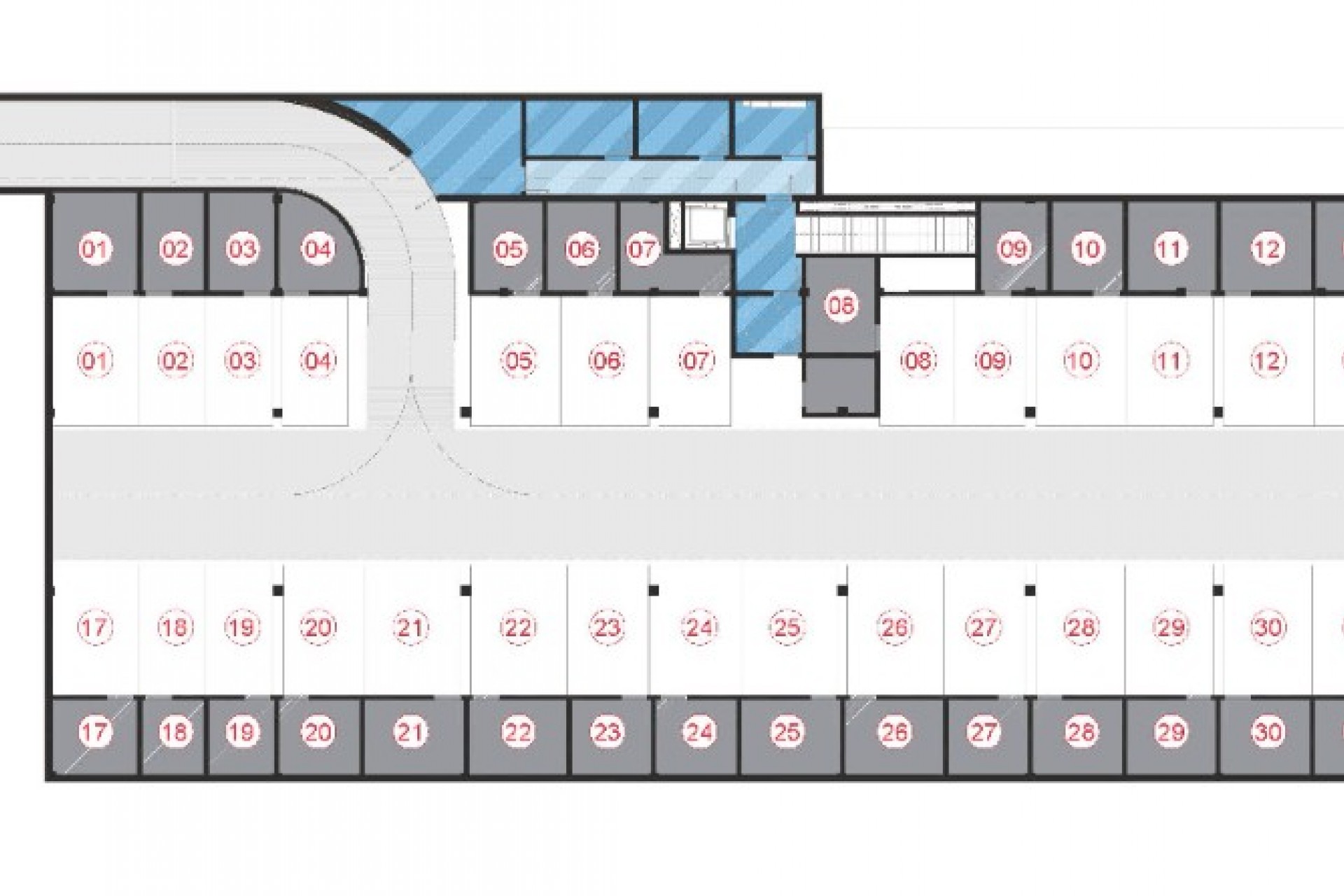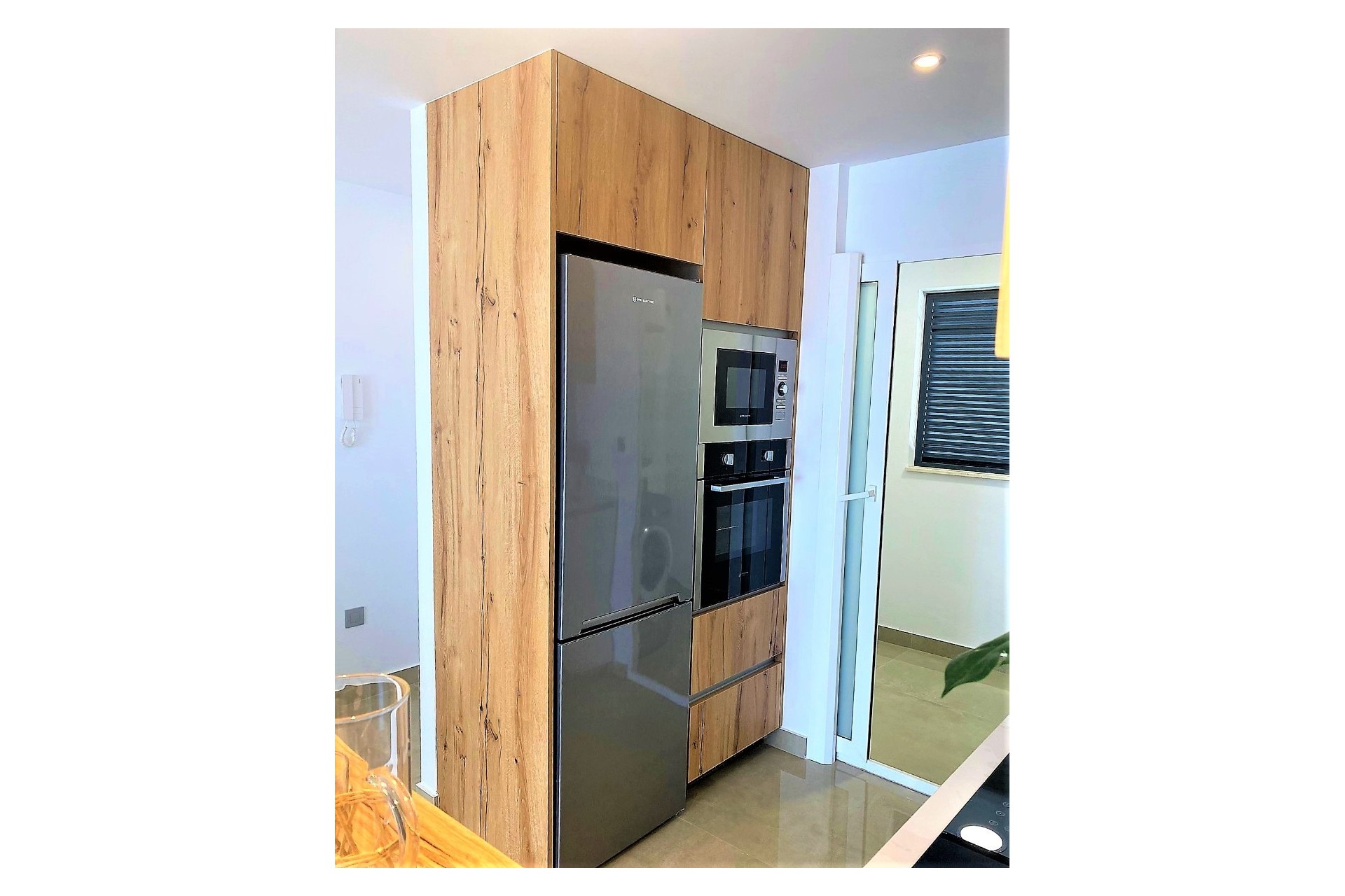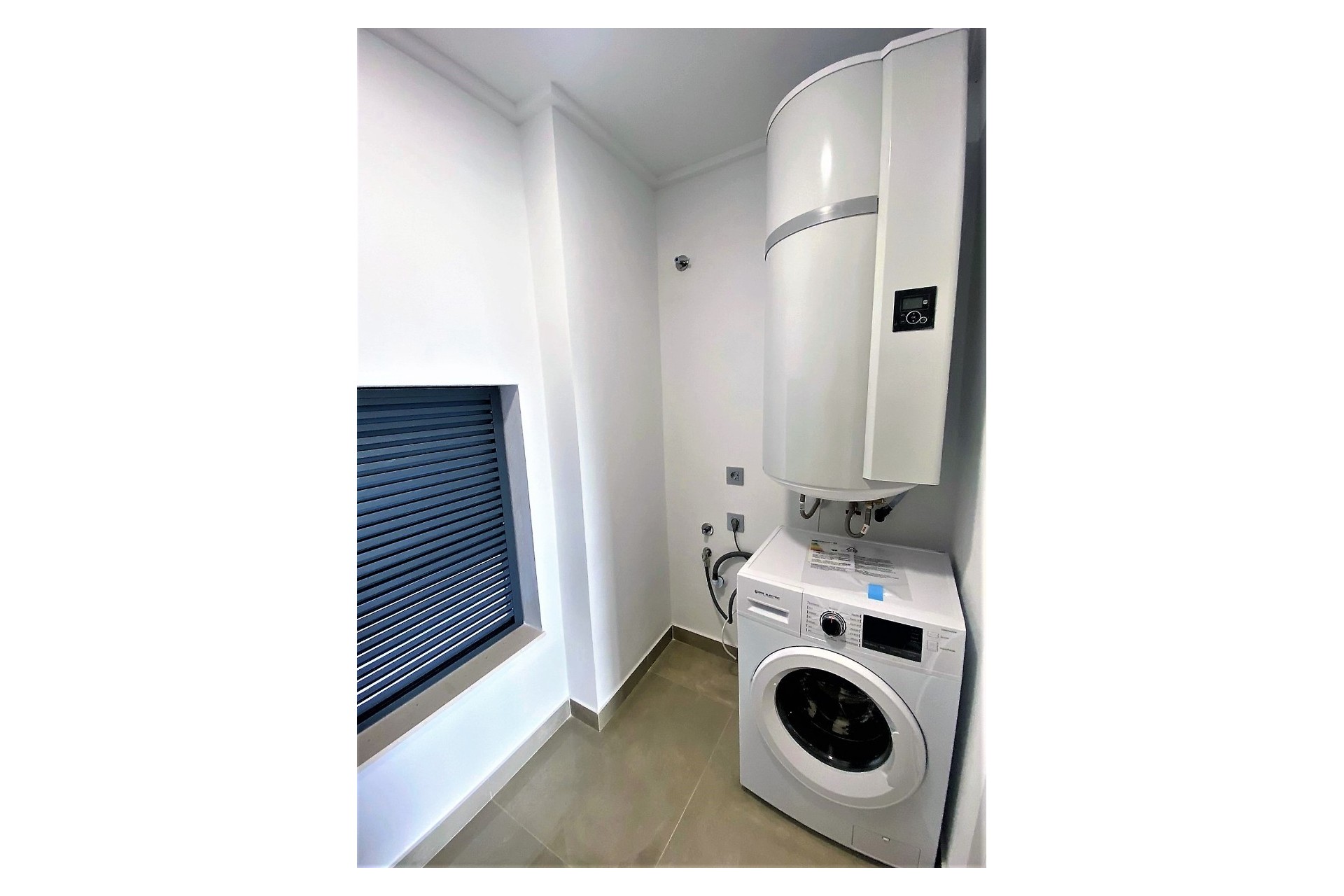 Gallery next to the kitchen, with space for the laundry area and DHW.