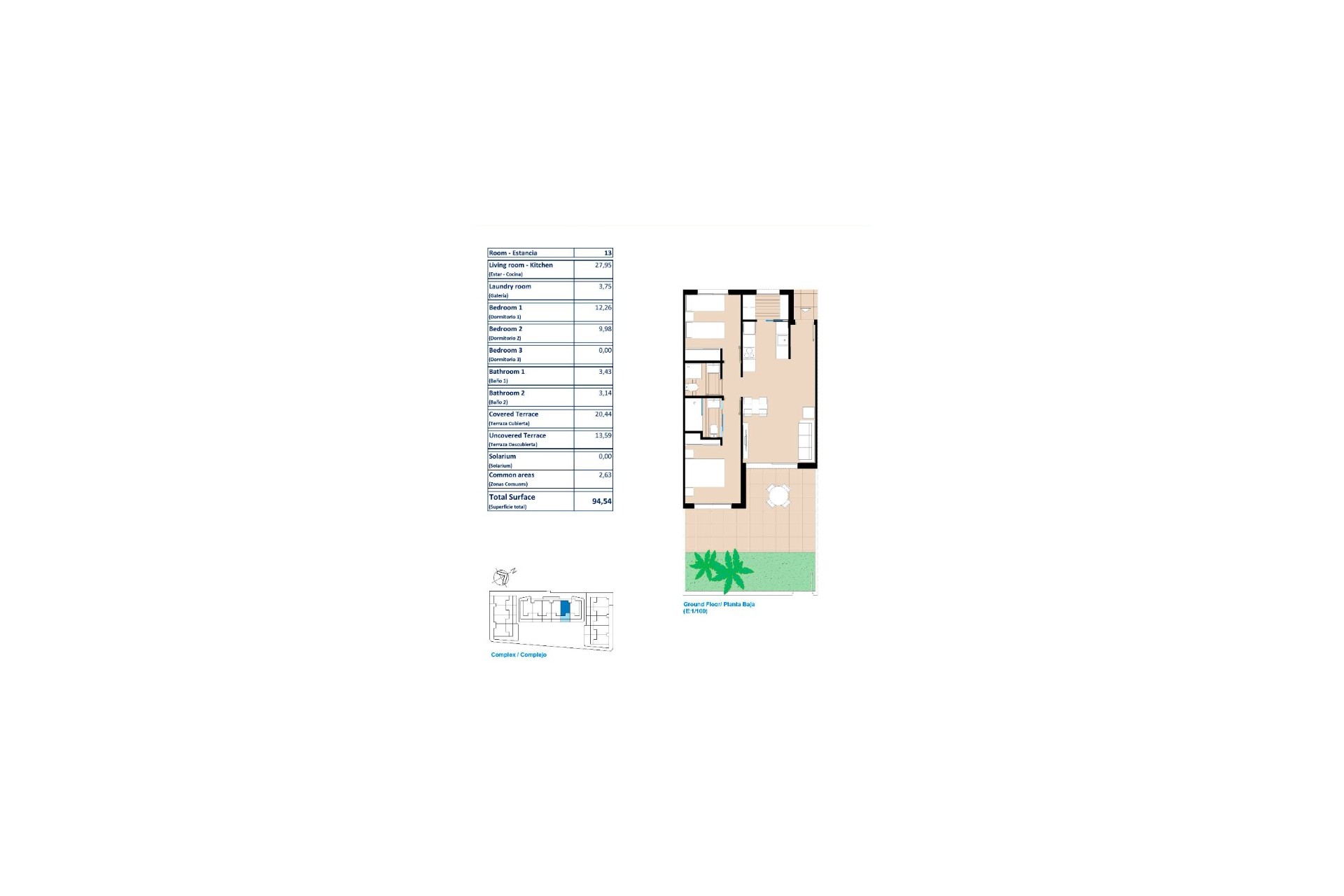 Located in a beautiful residential complex made up of 34 bungalow-type apartments with beautiful architectural design, built with top quality materials and designed for comfort and enjoyment. They can be on the ground floor with a garden and terrace or first floor with a solarium with 2 bedrooms and 2 bathrooms.
