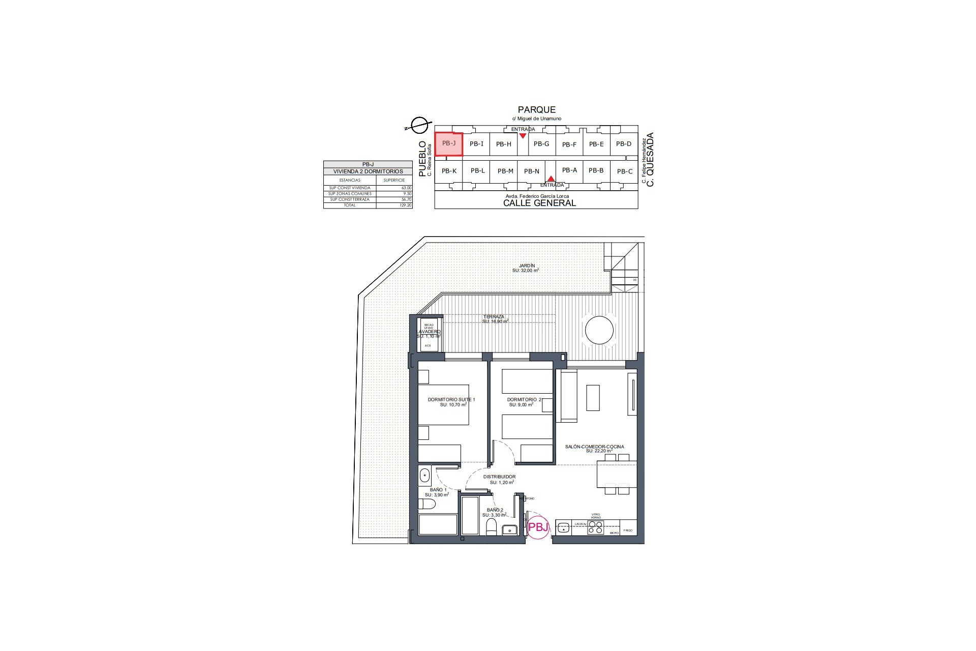 The residential is located in the center of the charming town of Benijófar, it is surrounded by golf courses, natural parks and historical sites, it also offers all the services necessary for daily life, supermarket, bakeries, markets, pharmacies, shops, health center and a A short distance away you will find some of those typical Spanish bars where you can enjoy tasty tapas at a low price. Communicated with other towns by an excellent road network. 14 km from the beach. 5Km from Golf Courses. 40 km from Alicante International Airport.