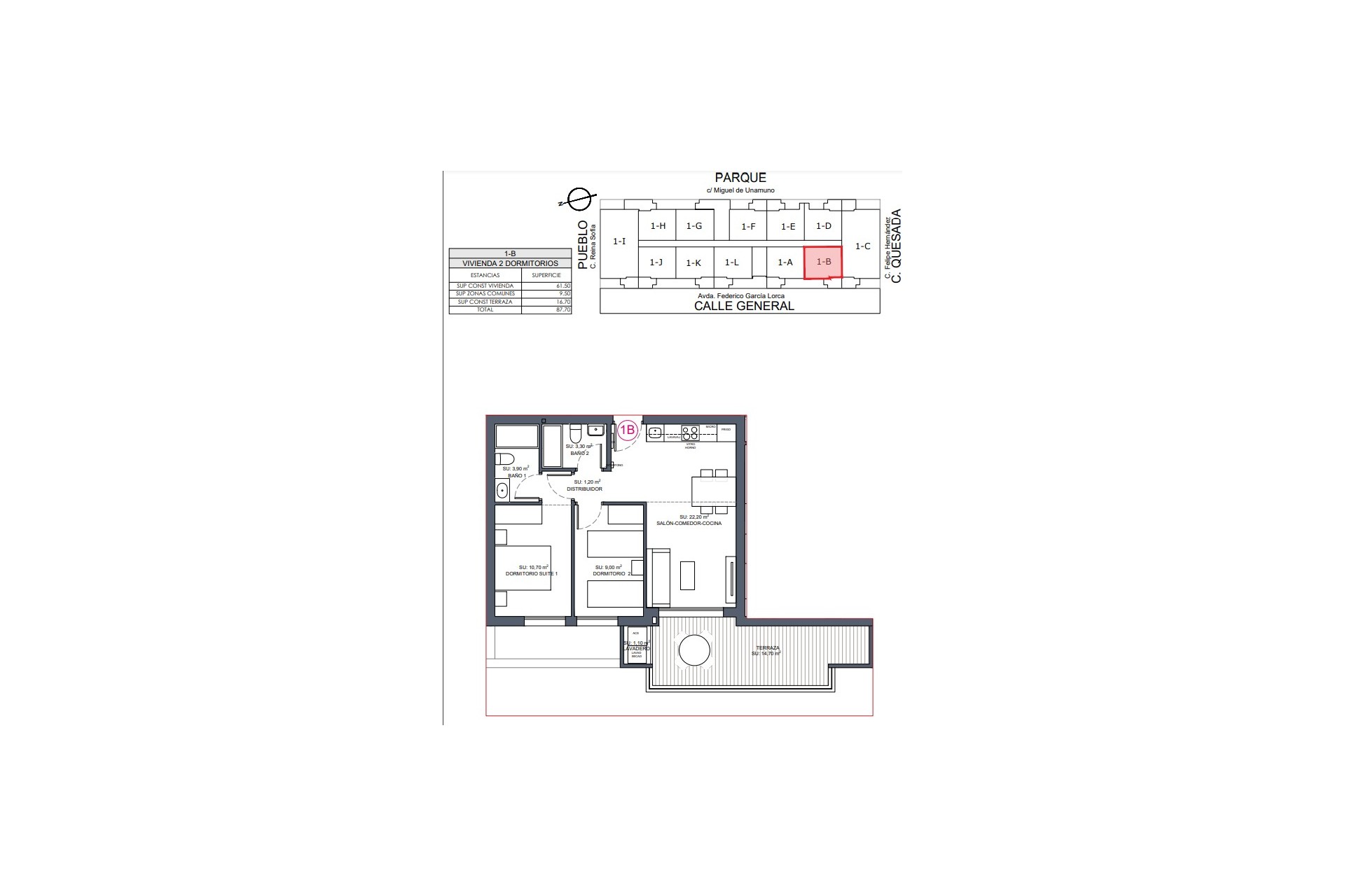 First floor apartment with 2 bedrooms and 2 bathrooms, of which the master bedroom has an en-suite bathroom. Bright and spacious living-dining room with open-plan kitchen that opens to a 17.3 m2 terrace. It also has a separate laundry room. Optional garage space.