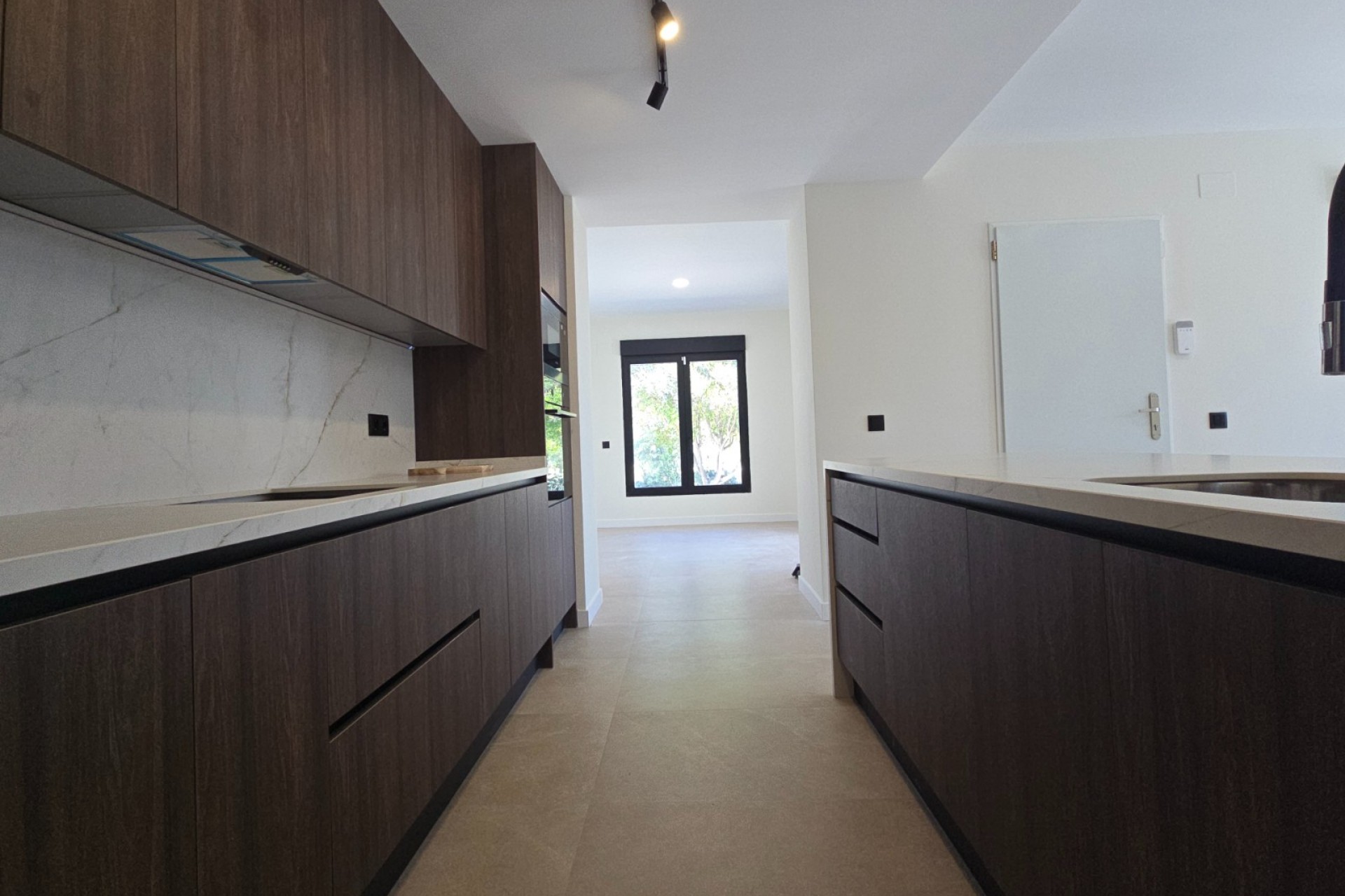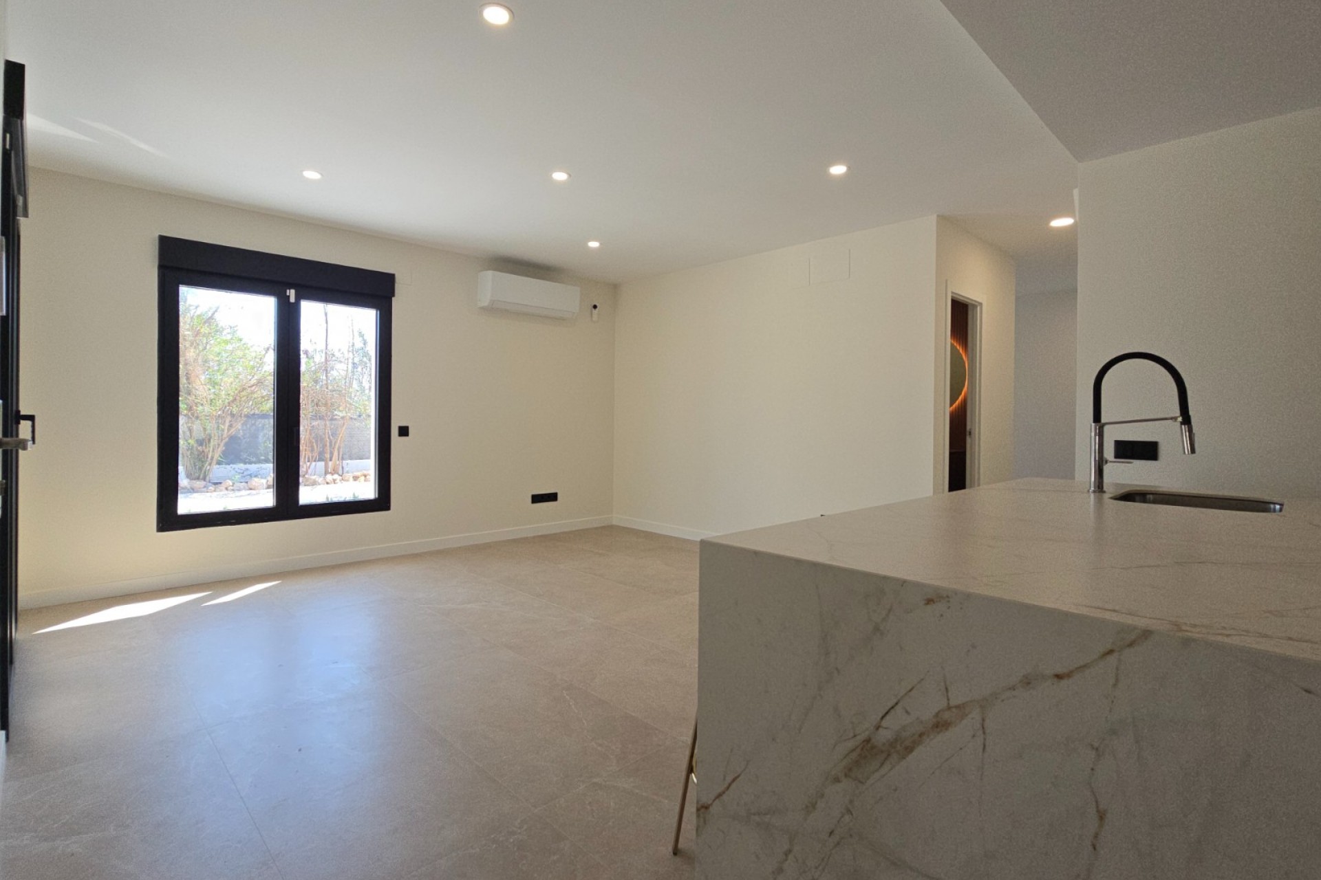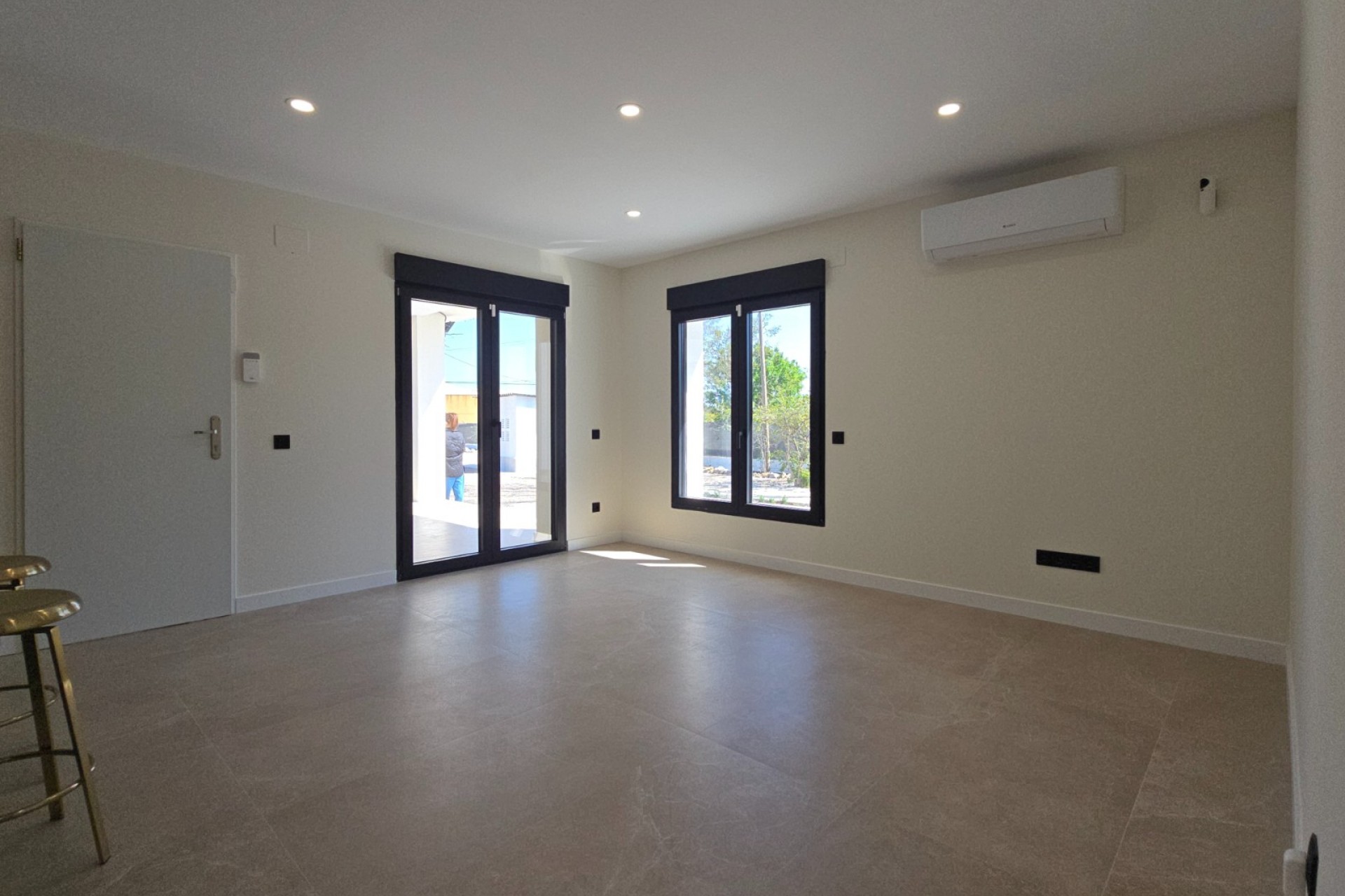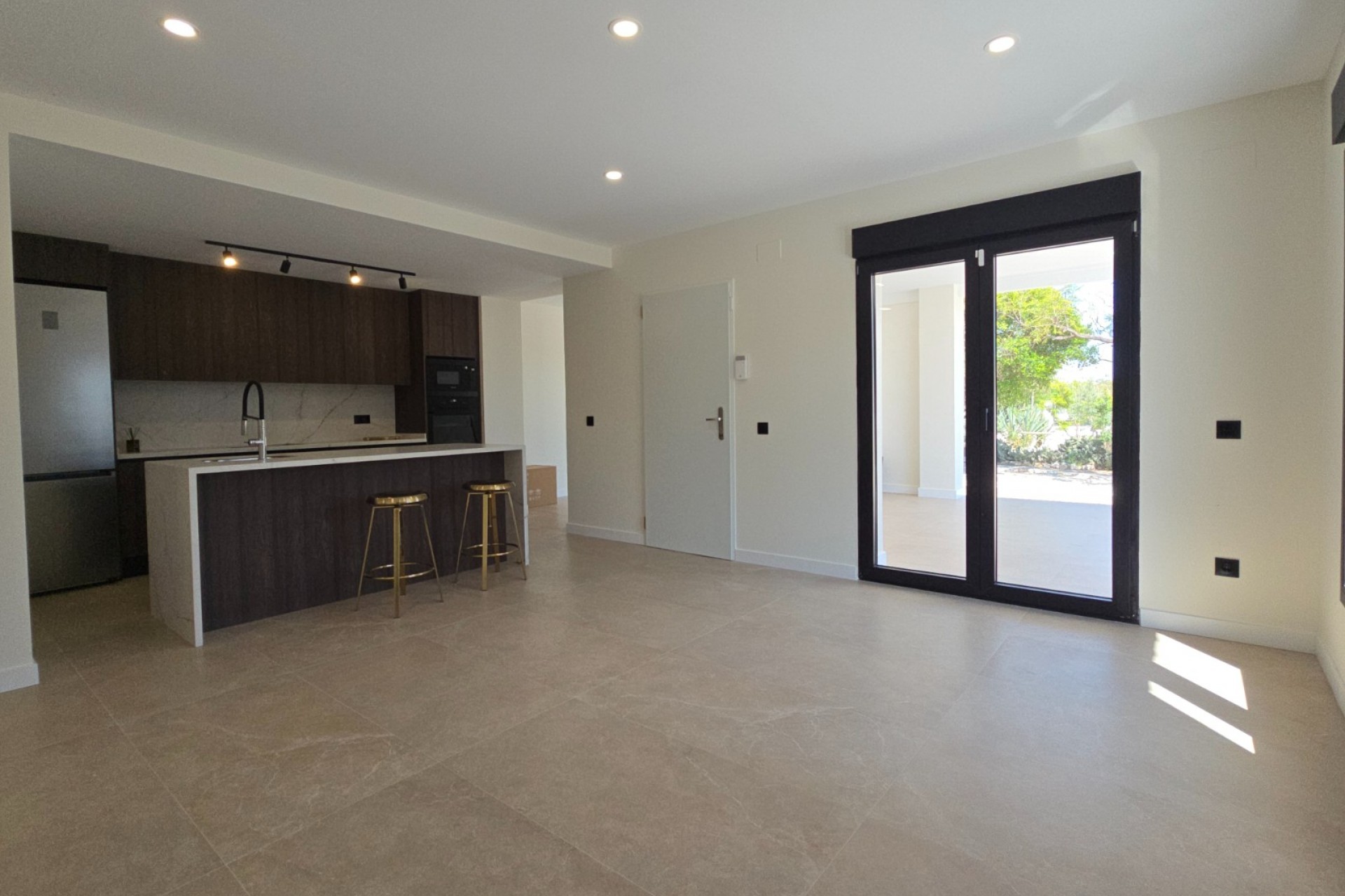 - Suelos de vanguardia: Porcelánico de gran formato (60x120) en toda la casa.